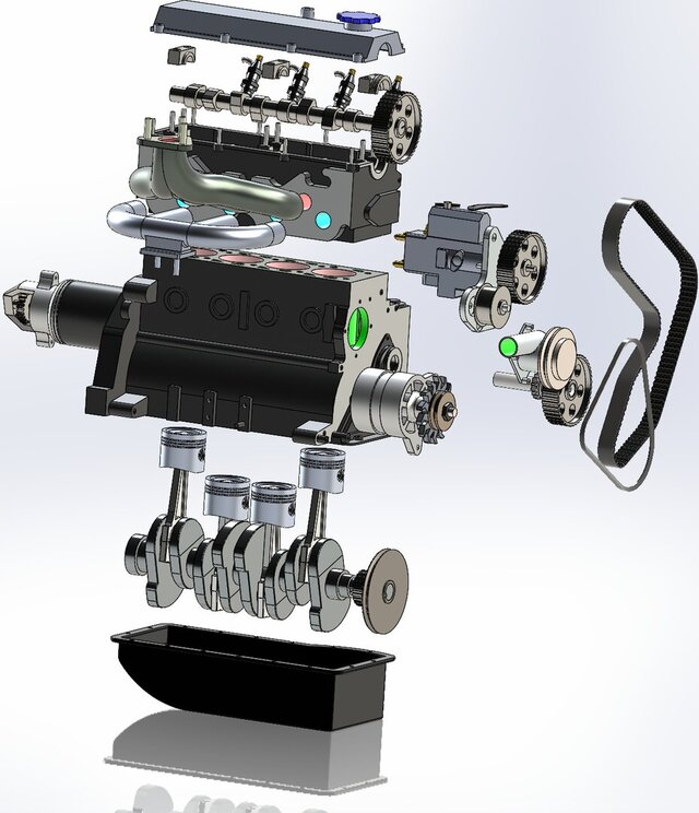 Designed and developed a complete 4-cylinder 4-stroke engine model using SolidWorks, based on real-world dimensions and mechanical principles.