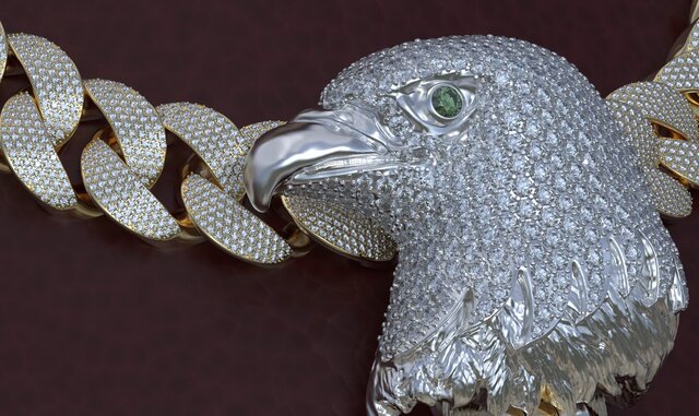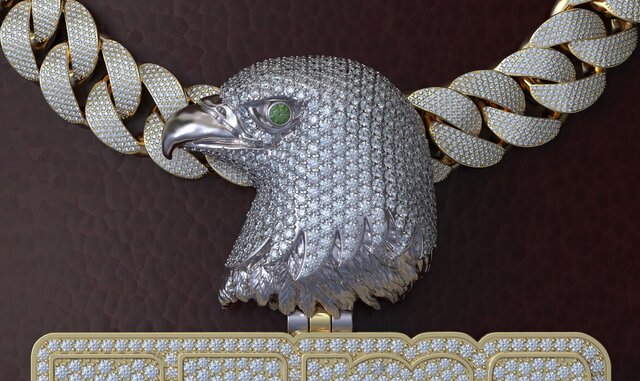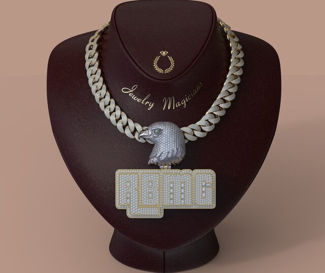 Iced Eagle Head Nameplate Pendant with Pavé Cuban Link Chain design by jewelrymagicians