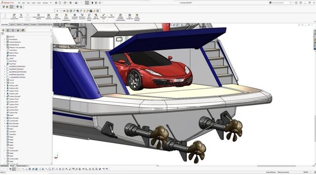 Finally, with SOLIDWORKS Visualize, realistic renderings of the boat were created to present the final model in a visually appealing way.
