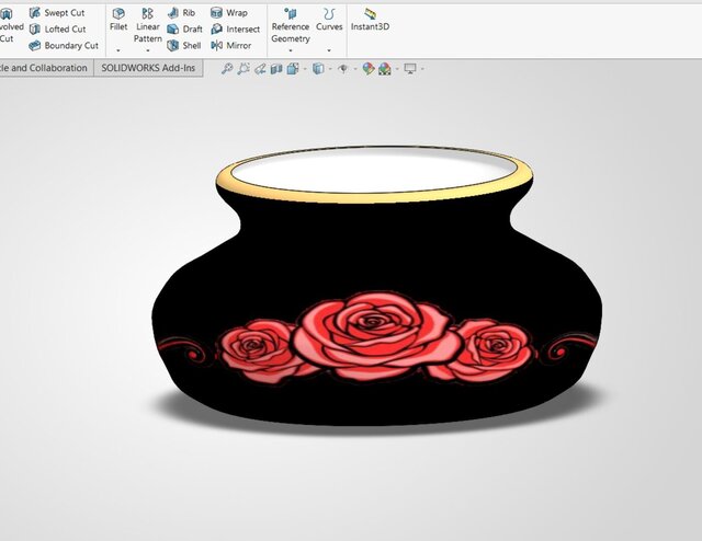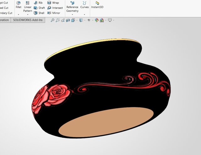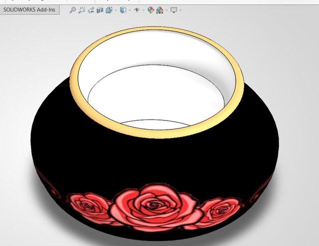 Modeled in SolidWorks with attention to proportions, surface finish, and decorative detailing, this vase demonstrates precision craftsmanship and visualization skills suitable for product design, 3D rendering, and photorealistic presentation.