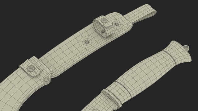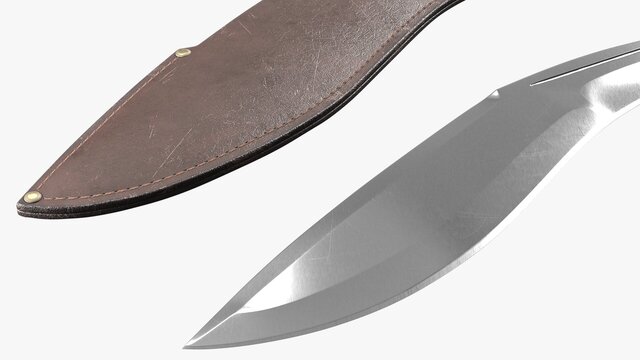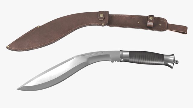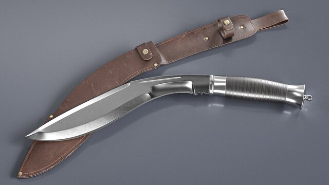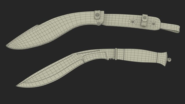 High-quality product visualization model of a Kukri knife with scabbard, created with clean subdivision-ready topology.