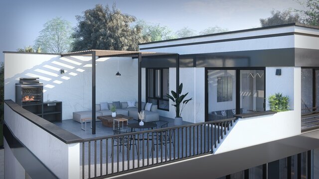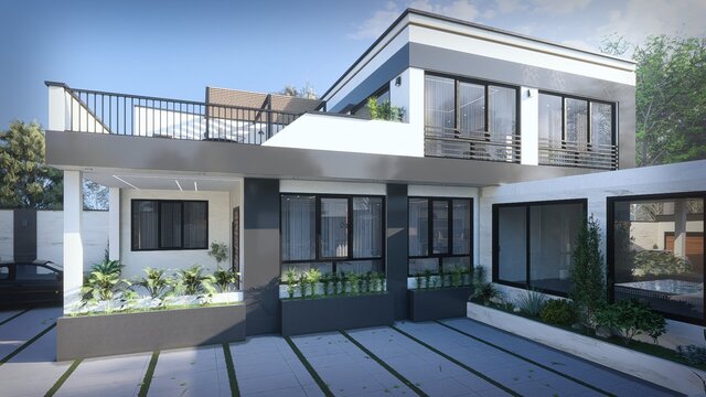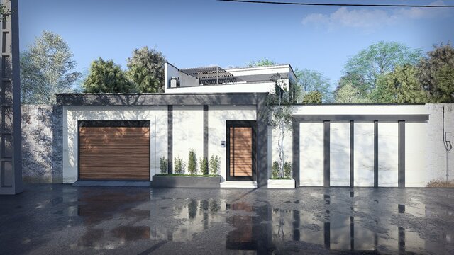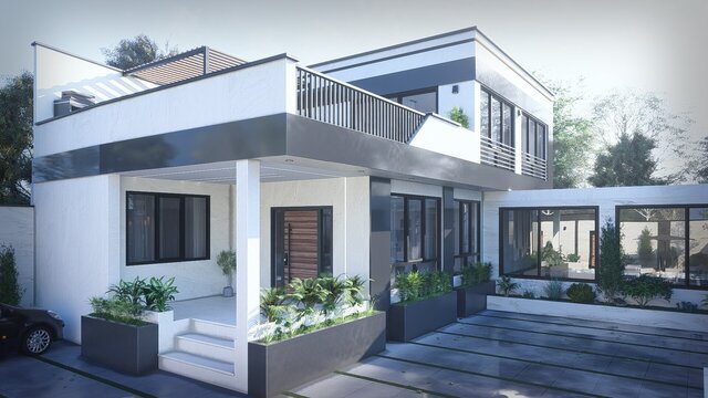 The Black and White Villa Project is a modern duplex villa, with its facade and landscape design created by me. A modern and minimalist design has been considered for this project, and the simplicity and avoidance of excessive ornamentation have greatly contributed to its beauty. The design and 3D modeling were done using SketchUp, and the rendering was carried out with Lumion.