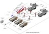 This is a centralized lubricant dispensing and waste oil collection system designed for a heavy truck service workshop (truck service trench bay). It allows mechanics to quickly and cleanly fill various oils, grease, and coolant into trucks while simultaneously collecting the drained (waste) oils from the vehicles.The system is typical for large fleet maintenance facilities (mining trucks, dump trucks, heavy commercial vehicles, etc.).Main Components & How It Works1. Storage and Dispensing Side (Clean Oils)Several large barrels/drums are stored on the right side of the workshop.