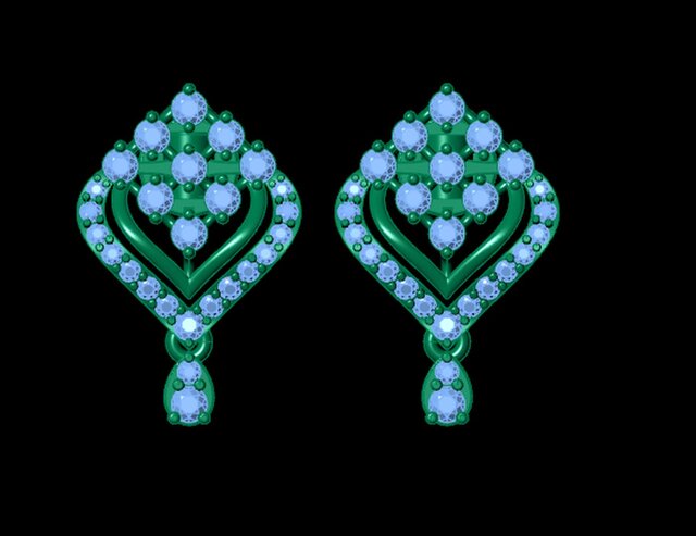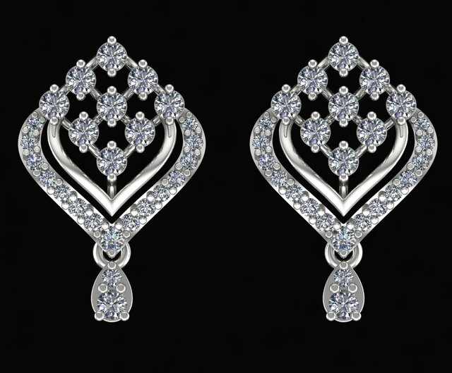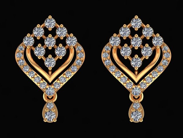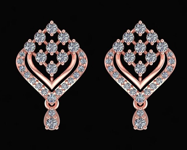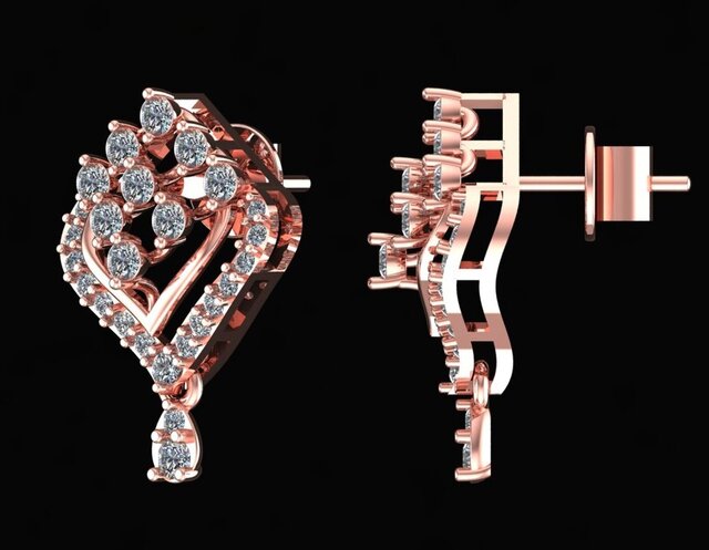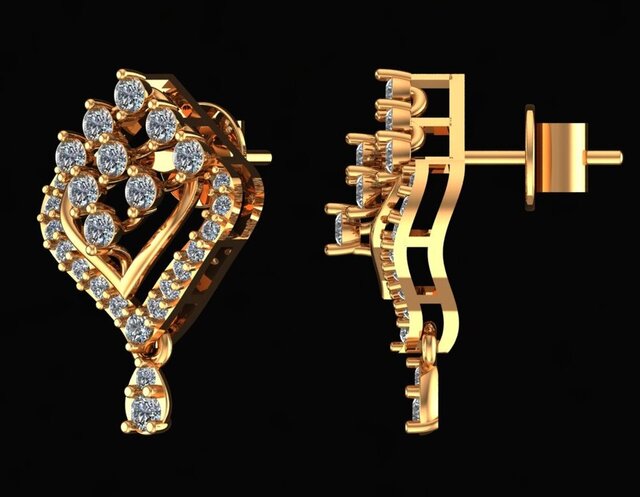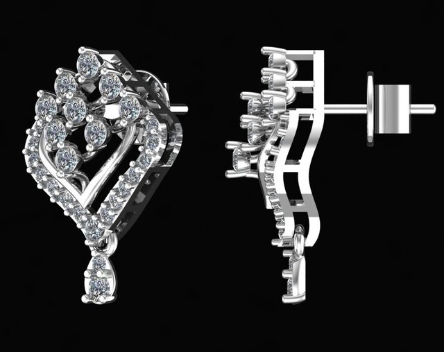 This is a premium diamond earring (tops) design featuring a heart-shaped floral cluster with a delicate hanging drop element. The design combines elegance and modern styling, making it suitable for bridal and special occasions. Carefully modeled with precise proportions, detailed diamond settings, and a strong structure for real jewelry production