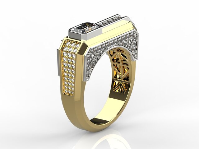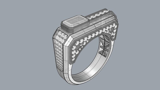 Designed a luxury men’s signet ring with a central gemstone and pavé diamonds on the shoulders. The model was created in Rhino/Matrix with precise stone settings and production-ready proportions. Final renders were produced to showcase the design for presentation and manufacturing.