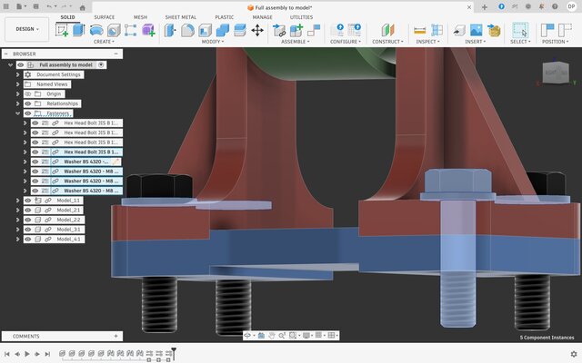 • Standardized Hardware: Integration of standard fasteners (bolts and washers) from engineering libraries for a complete Bill of Materials (BOM) view.