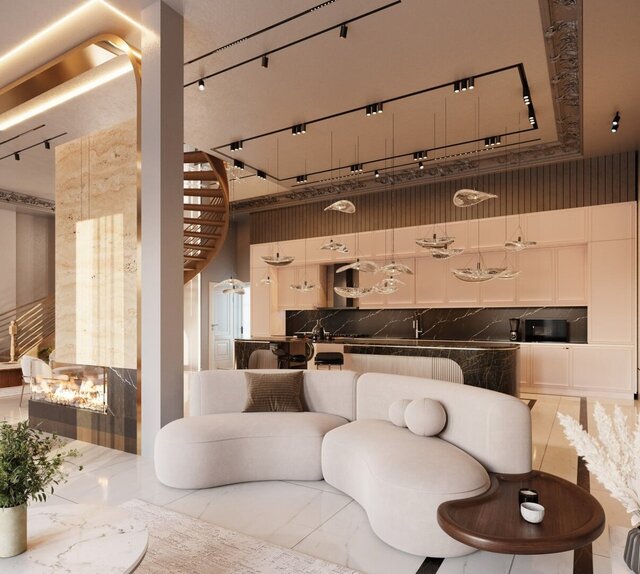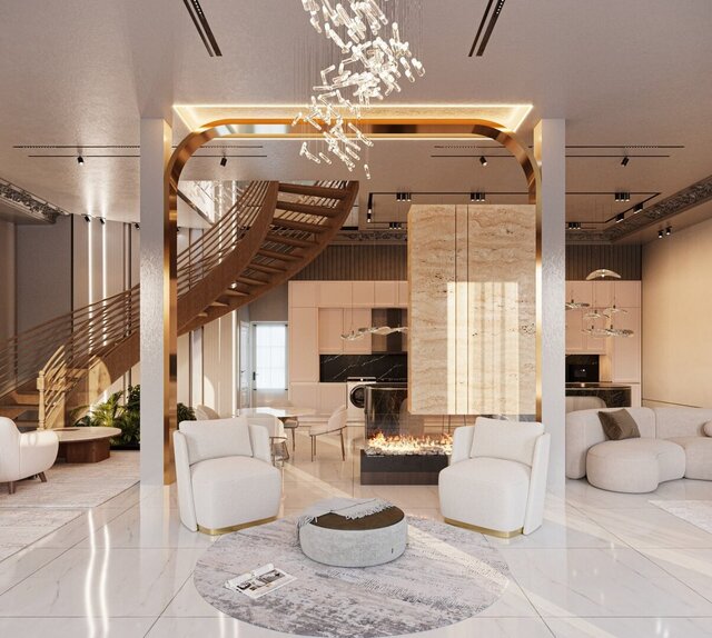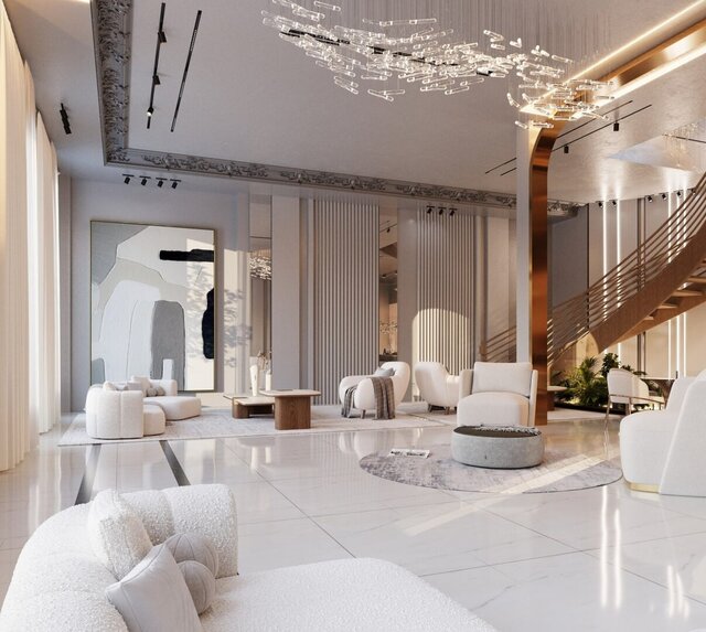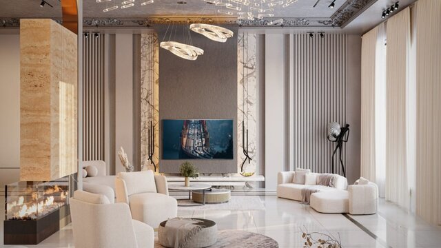 This modern luxury living room project was fully designed and visualized by me, covering space planning, material selection, and lighting strategy. The interior features a refined stone accent wall, custom furniture layout, and balanced natural illumination to create a sophisticated residential atmosphere.