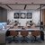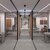 The material palette combines soft neutral tones with warm wood textures and matte black accents to create a balanced professional environment. Linear LED lighting and recessed spotlights were used to highlight circulation paths and provide uniform illumination across the workspace.