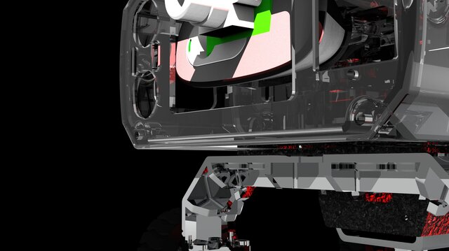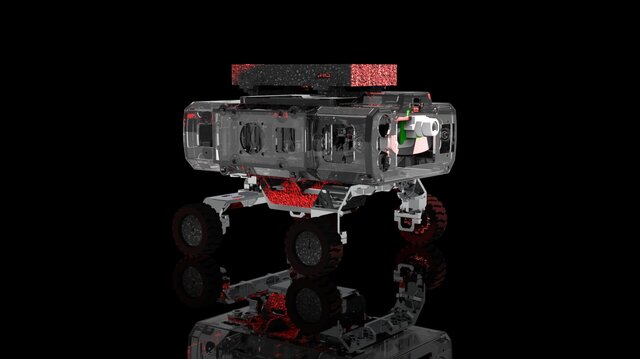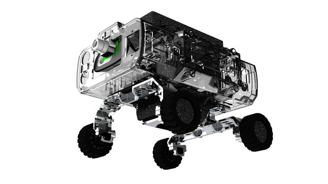 The chassis is designed with a four-wheel independent suspension system, enabling stable movement across uneven terrain. Special attention has been given to weight distribution and ground clearance to enhance mobility and performance in off-road conditions.