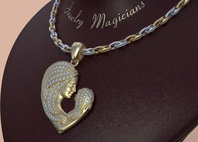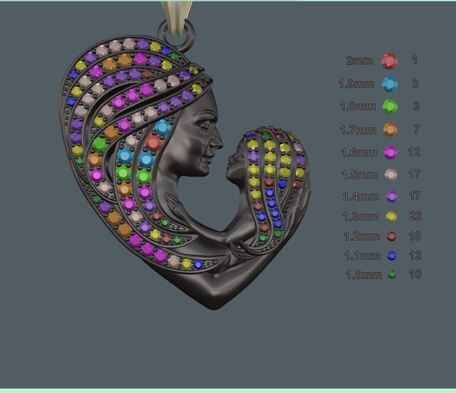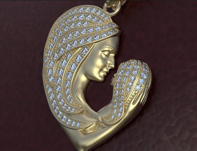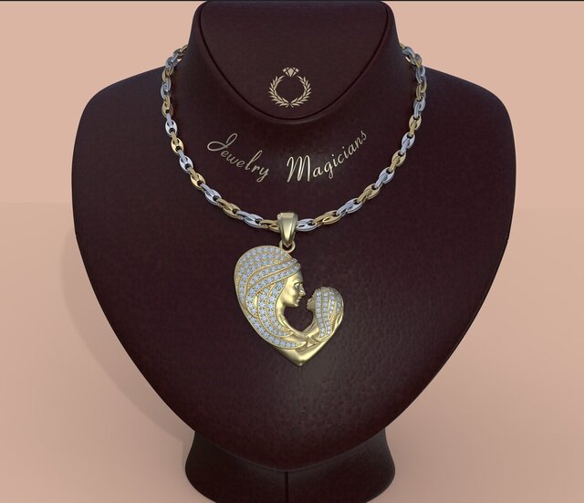 High-end mother & child heart pendant with pavé wave stone layout. Production-ready CAD optimized for casting, secure stone setting, and real-world manufacturing.