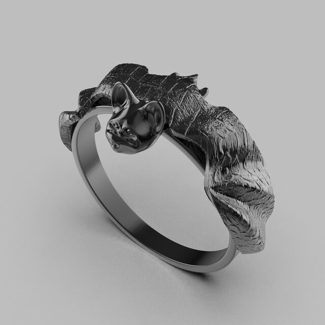 Sculptural ring featuring a bat — keeper of secrets and night roads.