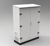 Designed an outdoor enclosure for a kiosk style inverter system for a residential estate. The client needed a manufacturer for the cabinets that was closer to the installation site, and as such had pre existing requirements in terms of dimensions and styling.