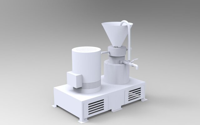 A fully detailed project of a high-performance 3-stage colloid mill, suitable for producing peanut butter, tahini, or similar viscous pastes. This includes: