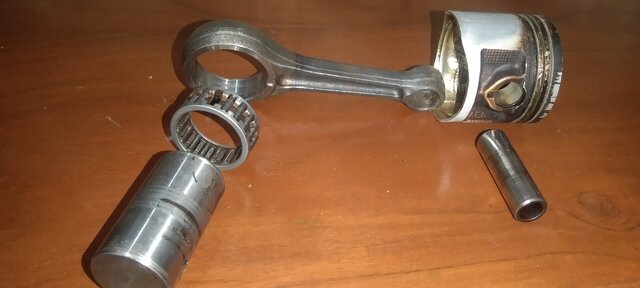 Piston with connecting rod, sliding pin, roller bearing and,wight is reversed in Creo parametric software,just for improving designing skills. Like the model if you feel it's good skill.