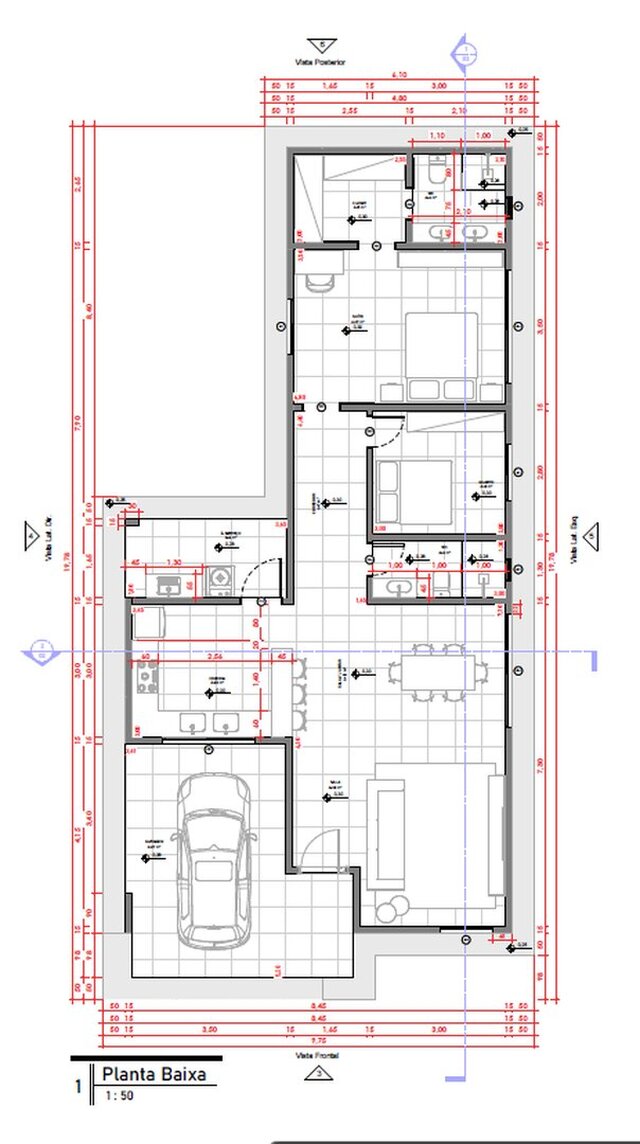 Planta baixo cotada com medidas especificas para comodo, trabalhada em conceito de circulação aplicada em maior aproveitamento. Modelagem em Revit podendo conter também modelagem em 3D + Renderiação.