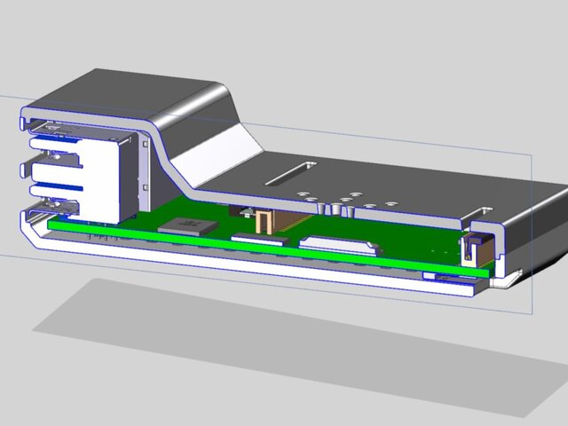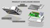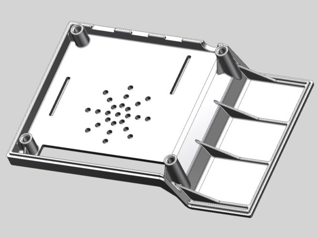 Designed a multi-part plastic enclosure intended for electronic components with internal PCB mounting features.