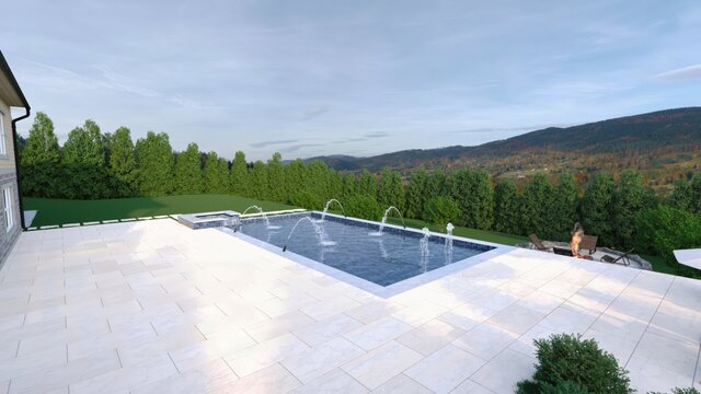 Architectural Visualization of the given Pool - 2D Plan, in the Backyard , USA. 3ds Max + Corona + ForestPack