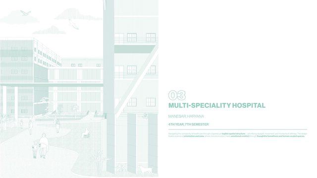 This portfolio showcases selected academic and design projects ranging from adaptive reuse of an industrial factory to urban design, hospital planning, and housing. The projects demonstrate my ability to work across different scales while focusing on functionality, context, and clear architectural representation.