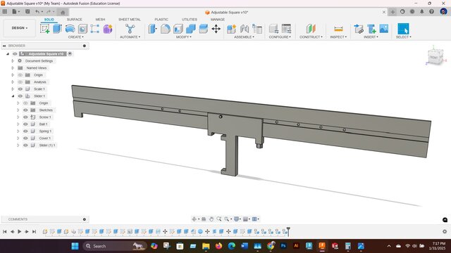 This project focuses on the **mechanical design** and **CAD modeling** of a **Custom Adjustable Drafting Square**. This specialized tool (or jig) is engineered for users requiring highly repeatable and precise angle/square adjustments.