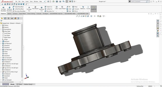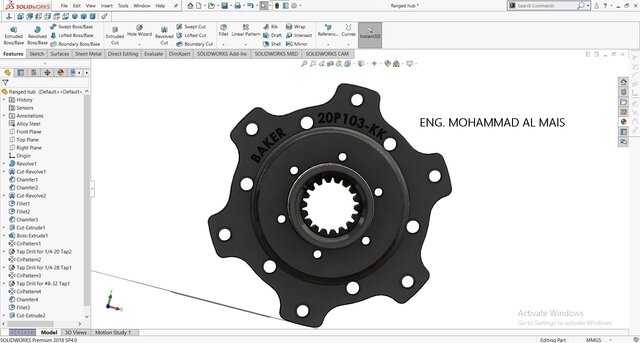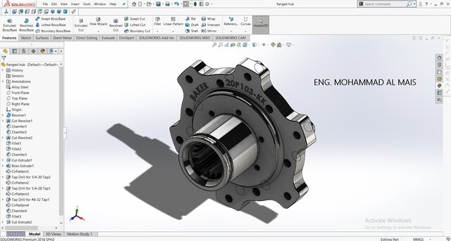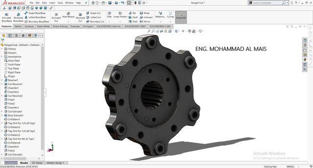 This SolidWorks model showcases a high-precision flanged hub engineered for efficient torque transmission and reliable mechanical connection between shafts and rotating components. The design features a splined inner bore for secure power transfer, bolt-hole patterns for robust flange mounting, and chamfered and filleted edges to enhance durability and assembly alignment. Crafted from alloy steel, the hub ensures superior strength, wear resistance, and long service life—ideal for applications in automotive drivetrains, industrial gear systems, and mechanical assemblies.