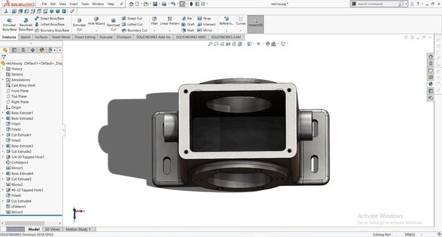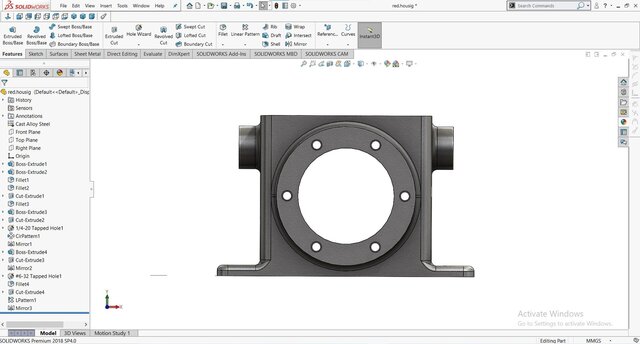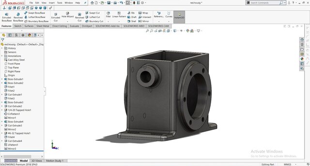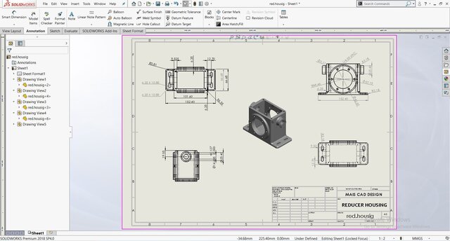This gear reducer housing is a robust and precisely engineered component designed in SolidWorks for mechanical power transmission systems. The model features flanged mounting bases, reinforced side walls, and accurate bearing and shaft alignment bores to ensure structural rigidity and smooth operation. The tapped holes and circular bolt patterns allow secure attachment of covers and mating components, while the filleted edges enhance durability and reduce stress concentration. Ideal for use in industrial gearboxes, automation systems, and heavy-duty machinery, this design optimizes both strength and manufacturability.