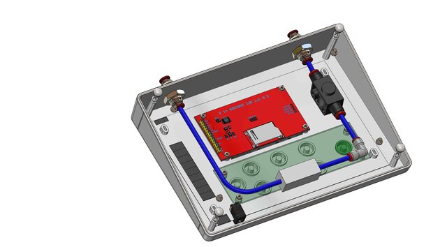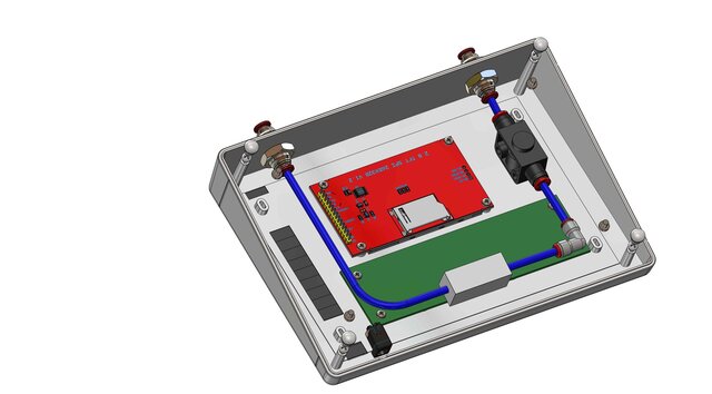 CO2 inhalation therapy is an effective treatment for brain health and blood detoxification. This is a cad model of CO2 inhalator device enclosure with illustration of internal parts layout.
