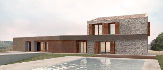 Architectural visuals and CAD drawings for the erection of a 750 sq. m residential development characterized by a concrete structure and glazed openings offering great views on the surrounding areas.