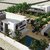 The model demonstrates integrated site and building coordination within a single Revit environment, covering architectural layout, site elements, and landscape components. The bird's-eye visualization provides a clear overview of space planning, circulation flow, and outdoor amenity distribution across the compound.