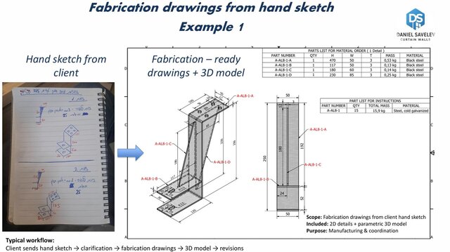Unitized & stick systems, Skylight roofs & Fabrication drawing from sketch