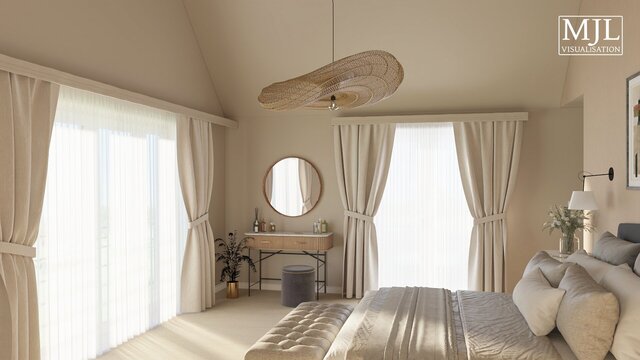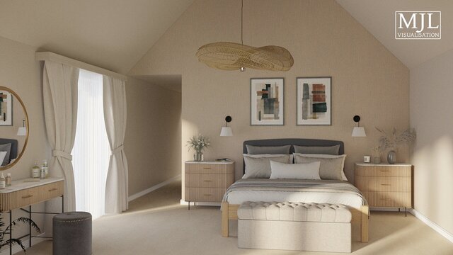 Proposals for bedroom refurbishment, images produced in order for the Interior Designer to communicate ideas to the client. Bespoke furniture & materials were required.