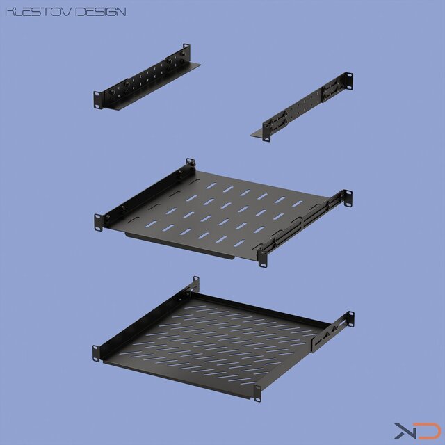 Various Rack mount accessories for server cabinets from my previous projects. These products is made in Kompas-3D (CAD), the rendering in a Keyshot.