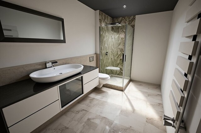 Development of the project in several phases: Laser scanner survey, creation of the existing floor plan, project planning, electrical system, plumbing system, 3D design with furniture layout, and various room renderings.