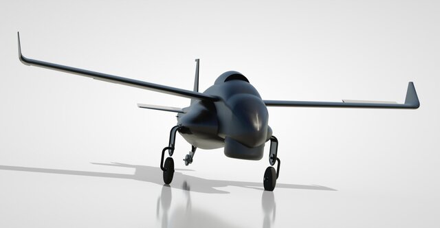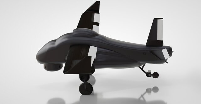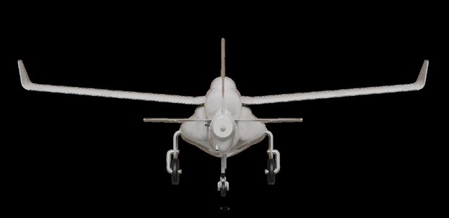 Thث model represents a scaled-down version of the RQ-4 Global Hawk UAV with a 0.7-meter length and a 2-meter wingspan . The fuselage has been carefully shelled, and required cuts were made to achieve an accurate design. Although not focused on fine-tuned aerodynamic details, the model is aesthetically pleasing and captures the essence of the Global Hawk's distinctive design.