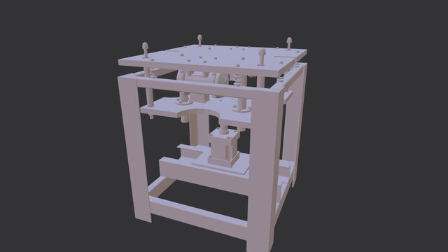 This is a 3D mechanical design of a sand casting molder machine, which is designed to remove excess sand from steel casting molds after shaping, and features support frames, mechanical linkages, and material flow zones optimised for durability and production efficiency.