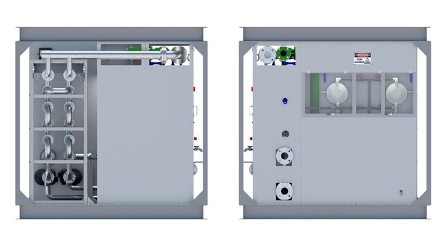 This continuous-operation hydrolysis skid is engineered for chemical, oleochemical, and wastewater treatment applications. It features saturated steam heating, precise chemical injection and dosing, a static mixer, and a sampling vessel for process monitoring.