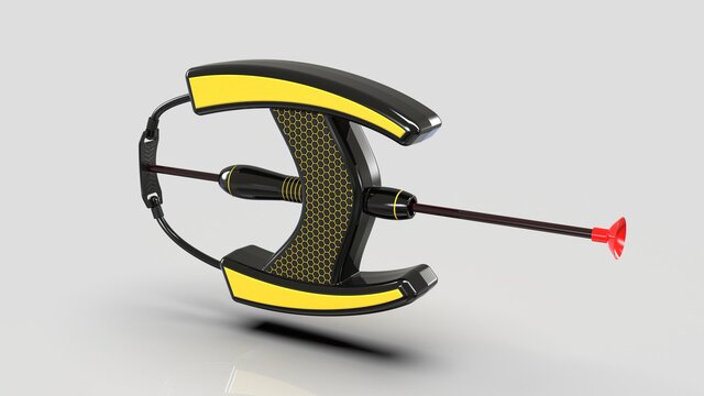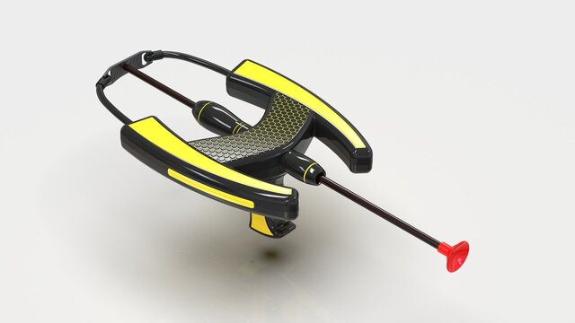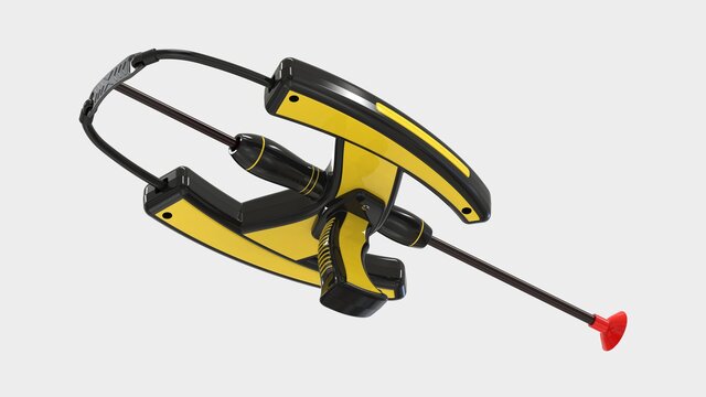 I designed this slingshot catapult toy that is both cost-effective to manufacture and has a unique design unlike anything else on the market. This device can be used in two ways. One way is that you can just hold the device by the handle, pull the elastic string, and release it to fire the arrow. The other way doesn't require the handle, and it can be easily removed. You can grab the bow-shaped midpart, pull the elastic string, and release it to fire the arrow.