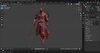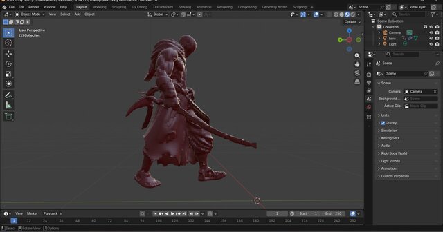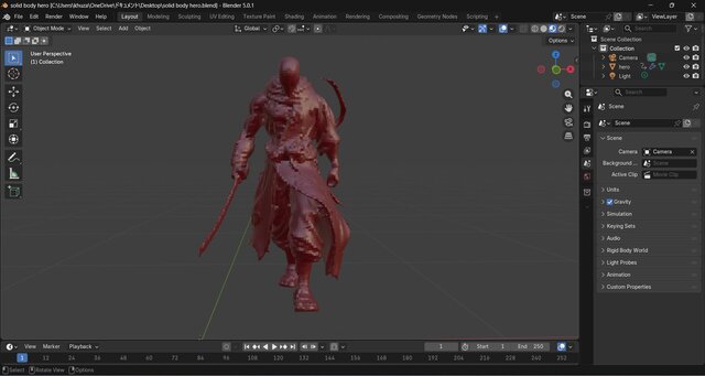 An advanced 3D modeling project featuring an organic hooded warrior with a unique voxelized surface.