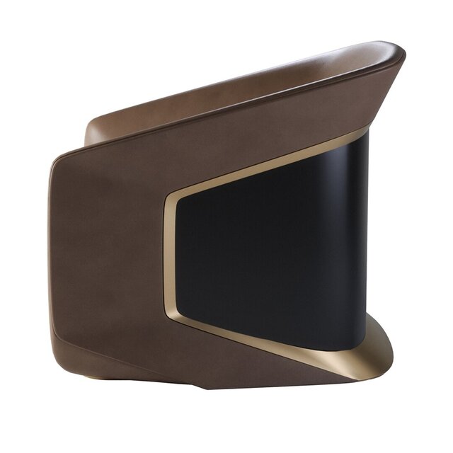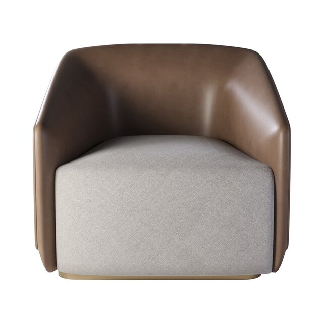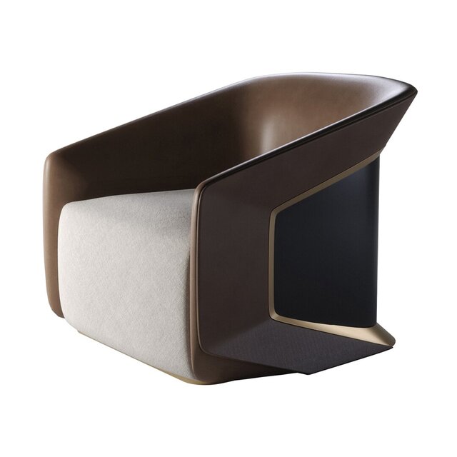 Modern luxury armchair designed for Imparator Mobilya, combining wood, leather, and fabric to create an elegant and functional piece. Includes detailed 3D model and render.