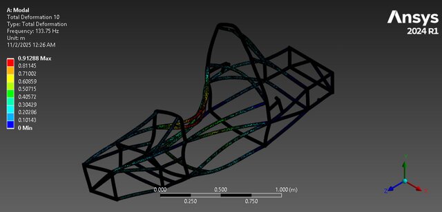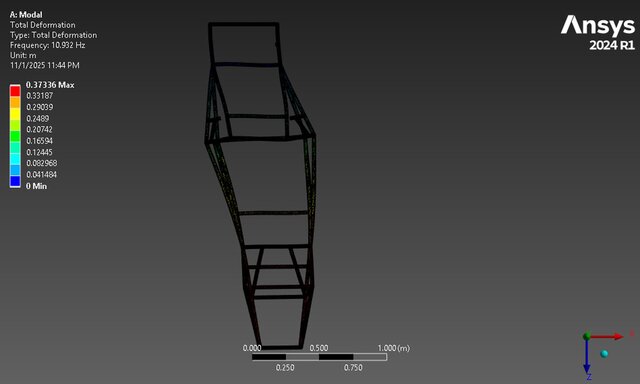 1️⃣ 10.93 Hz – Fundamental mode caused by side shear in X-direction at the chassis front.