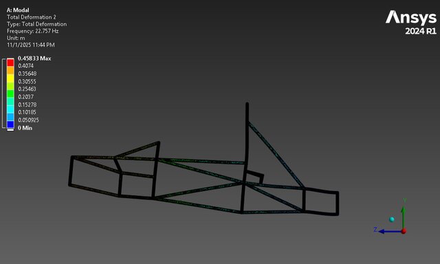 In this project, I dynamically analyzed a race car chassis to understand its behavior under various vibration modes and dynamic loads. My workflow covered Modal, Harmonic, and Transient Analysis — each revealing how the structure reacts to real-world excitations like bumps and side impacts.
