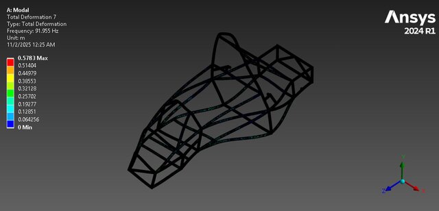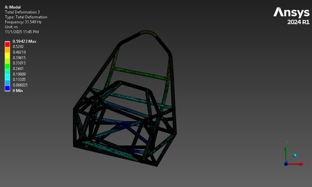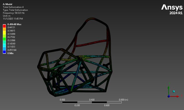 4️⃣ 58.52 Hz – Strong X-displacement at front and mid chassis.