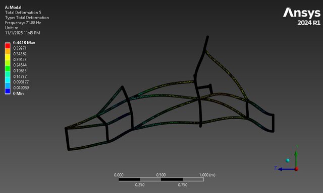 5️⃣ 71.88 Hz – Bending in Y, max at mid-span.