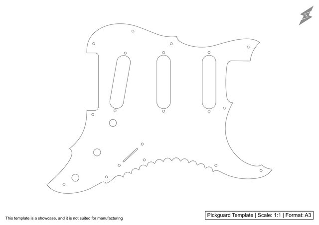 Stratocaster pickguard design for hand manufacturing or CNC machining.