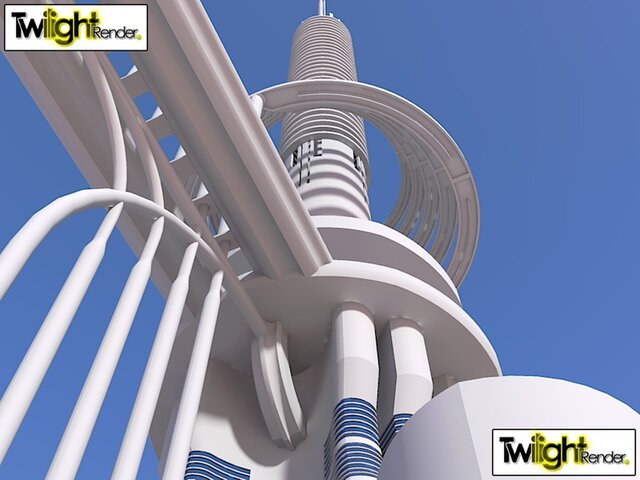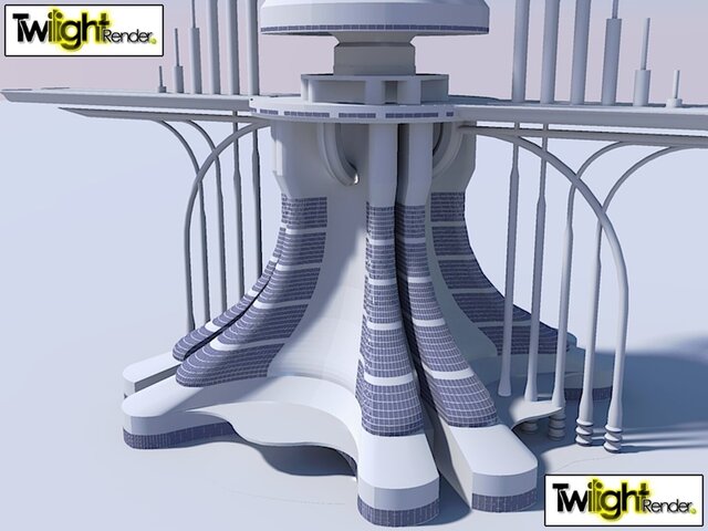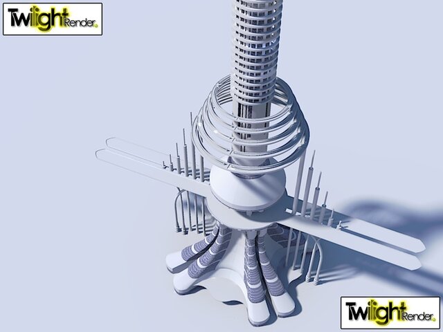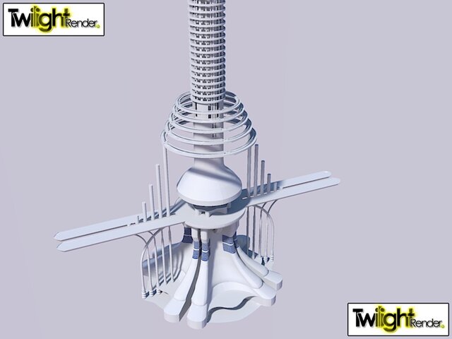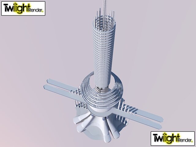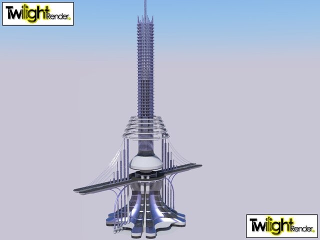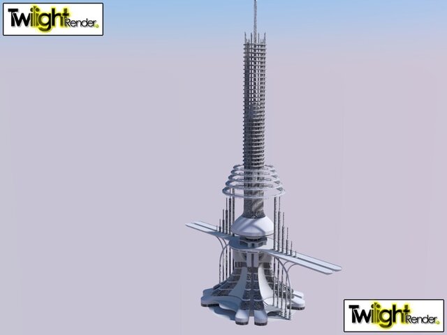 Space Elevator featuring suspended airport & multilevel business & Hospitality floors for travelers.