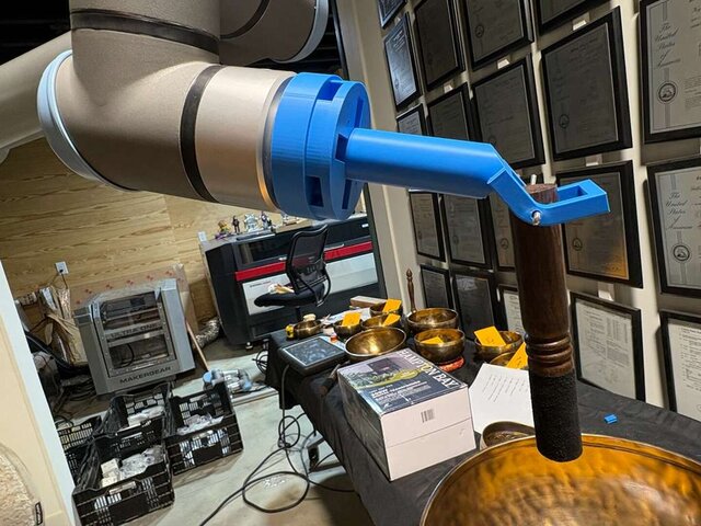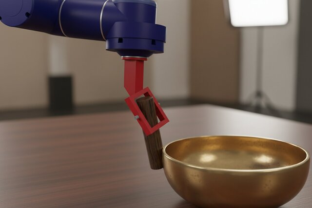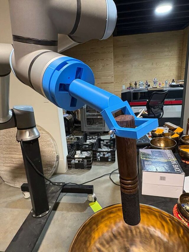 Acoustic Precision: By combining the free-swinging red striker with the UR10e’s sub-millimeter repeatability, the system achieves a level of tonal consistency impossible for manual play.
