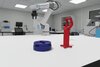 A specialized two-part adapter and striker system was designed to interface with the UR10e robot arm: