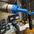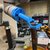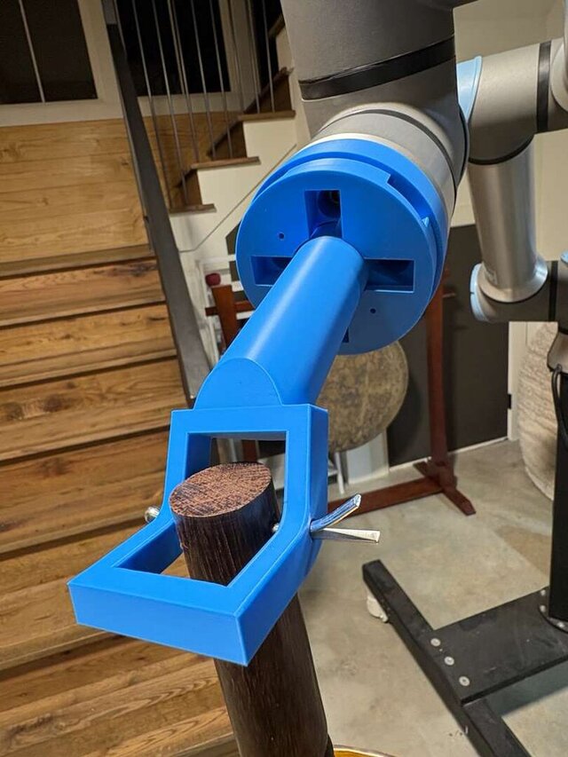 Blue Adapter Plate: A custom-machined base that mounts directly to the robot's tool flange, providing a secure, high-torque interface for the striking mechanism.