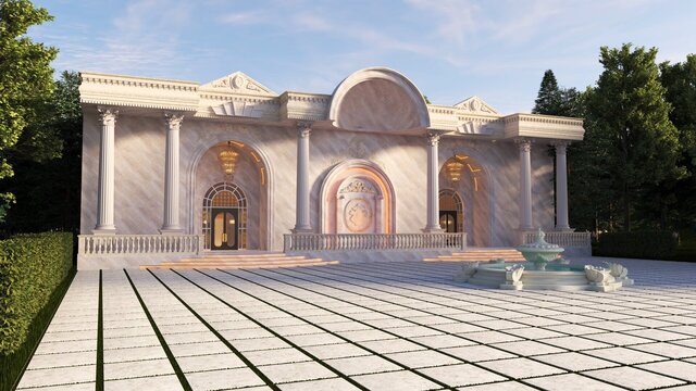 Key Materiality: The main focus was on majestic, light-colored stone to convey a sense of authenticity and permanence.