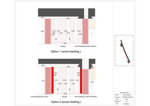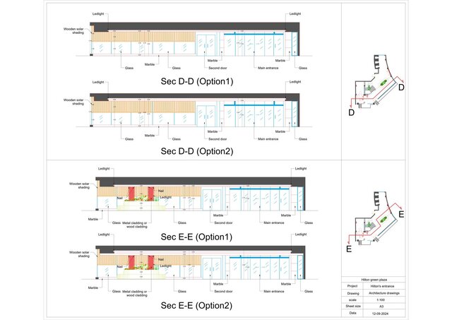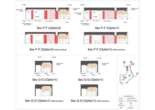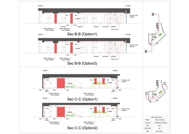 Elevations showing the final appearance of the elements from the outside.