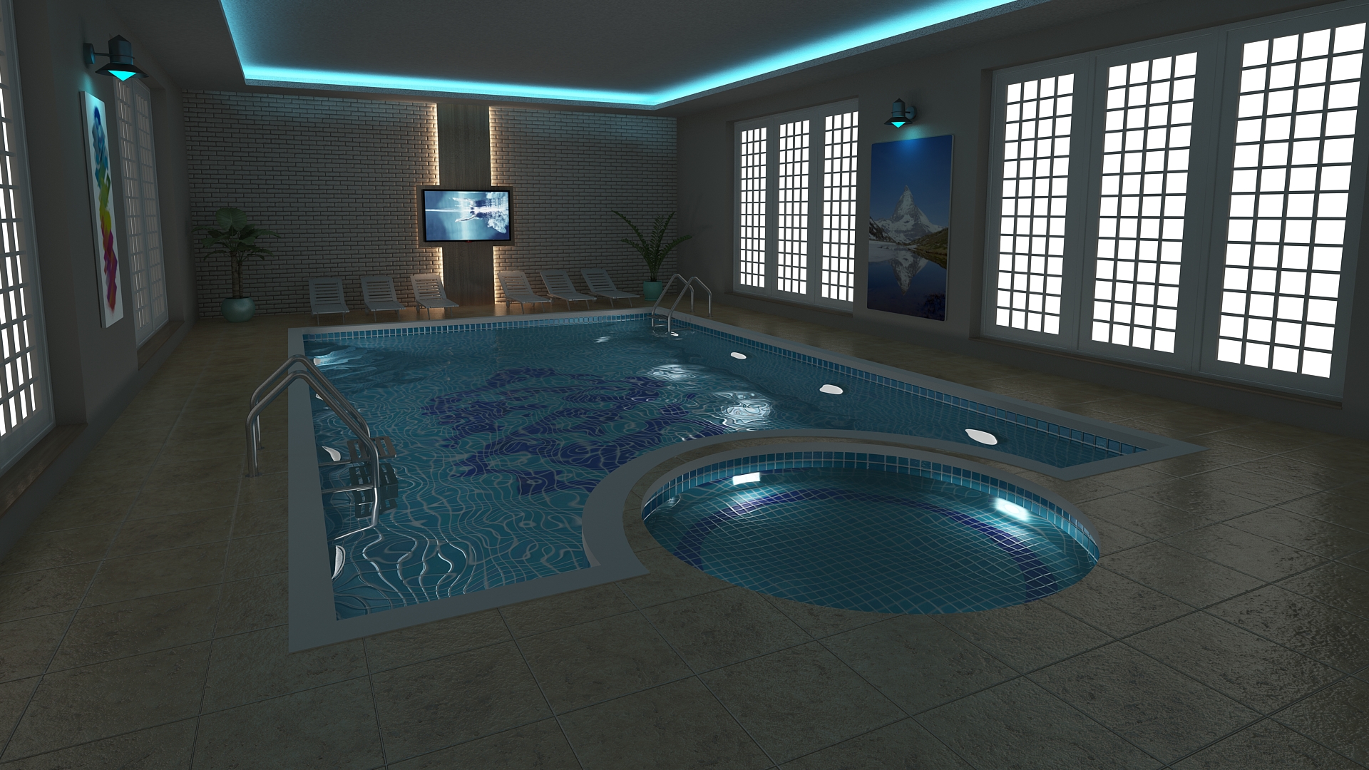 Care for a dip? Hot summer day or cold winter night, this hot tub/pool combo is hard to resist. Come for a swim and stay for the design talent! This model is an excellent demonstration of our designers’ skills in various sub-fields of rendering, allowing them to model hard surfaces, water distortion, and complex objects, all lit by complex ambient light. Whatever your vision, our designers can help you realize them. Contact us to take the plunge!